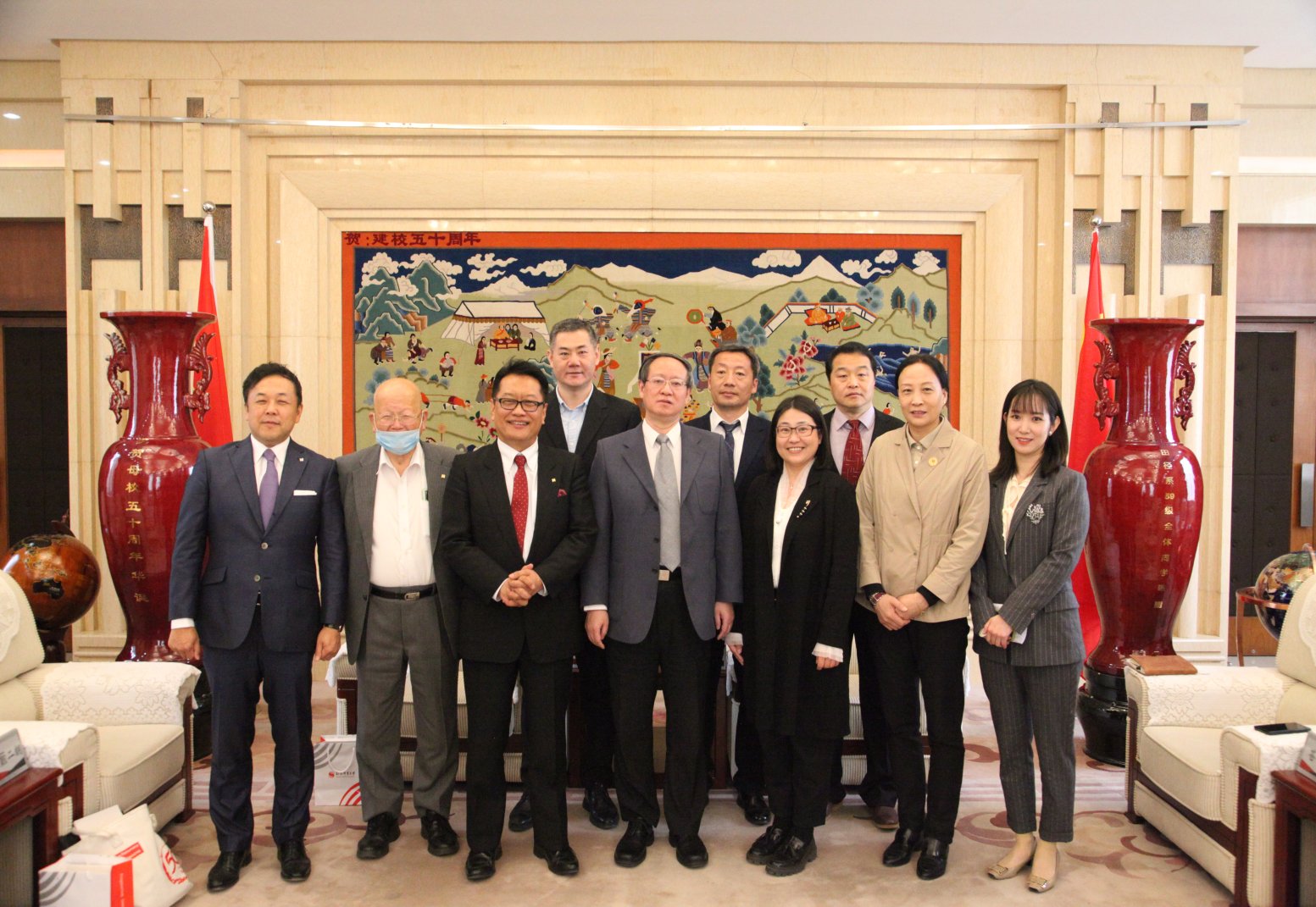 4月13日上午,日本中国友好协会代理理事长揚原安麿一行7人来米兰交流访问,党委副书记、常务副校长高峰会见代表团。