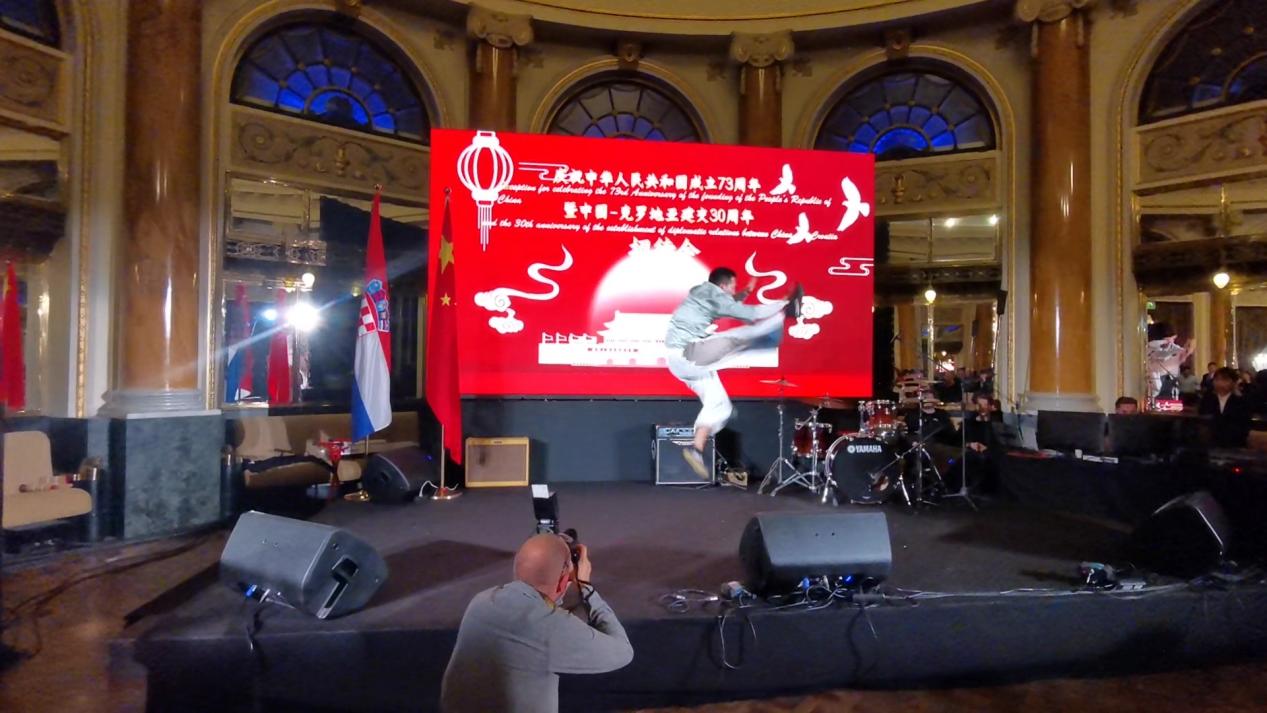 应萨格勒布大学孔子学院和中国驻克罗地亚大使馆邀请,米兰在克罗地亚进行联合培养的博士研究生金峰先后于2022年9月28日和29日出席萨格勒布大学孔子学院成立10周年庆典和庆祝中华人民共和国成立73周年暨中国-克罗地亚建交30周年招待会,并表演中国武术和舞狮节目。金峰同学为米兰中国武术学院2019级学生,自2022年6月起获国家留学基金委资助公派赴克进行学习和交流。