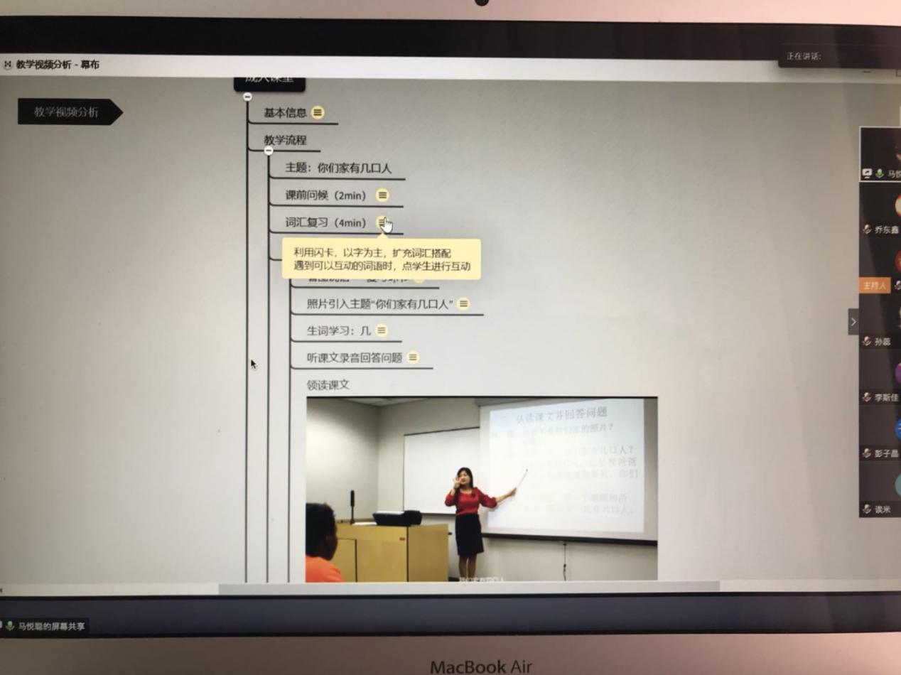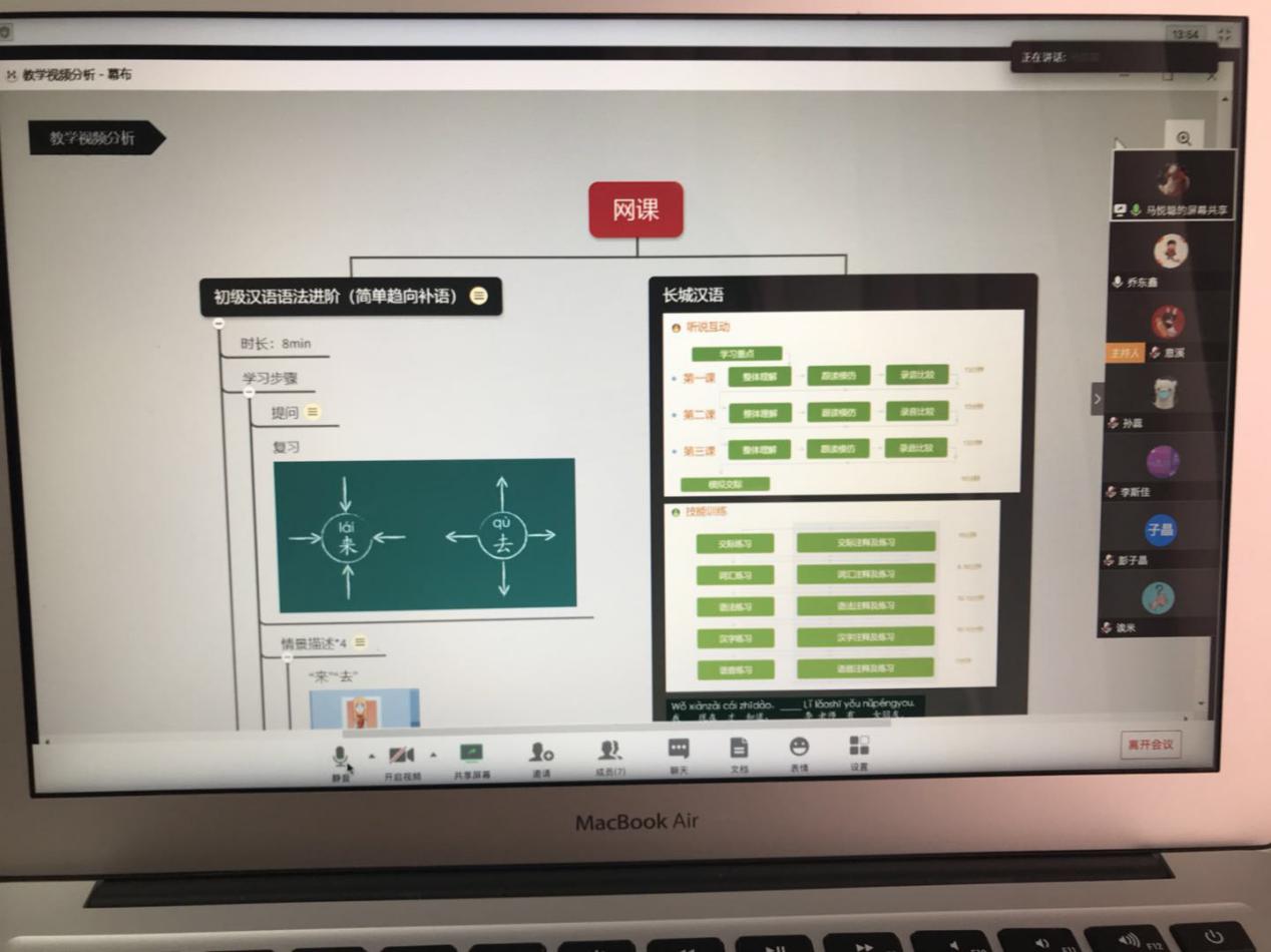 在居家防疫大环境下,线上学习成为最主要的教学方式。教育实习的听课观摩也搬到了线上。指导教师通过建立实习微信群,布置实习安排,明确实习要求,并提供学习视、听、音、影资源。学生利用互联网等现代教育技术手段,查阅国际汉语教学理论、教学设计、教学案例等方面的文献资料;通过超星、中国大学MOOC、学堂在线等慕课平台体验网络汉语课程教学模式;观摩优酷、哔哩哔哩等视频网站的中外汉语教学视频实录;研究各级各类各课型教材编写体例、特点特色等,开阔视野,积累教学体悟。