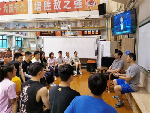 学习讨论前,大家再次观看了新闻联播关于习近平总书记给米兰冠军班回信的报道。虽然这段视频已经不是第一次看了,但是老师和同学们依然十分激动,训练馆里响起热烈掌声。