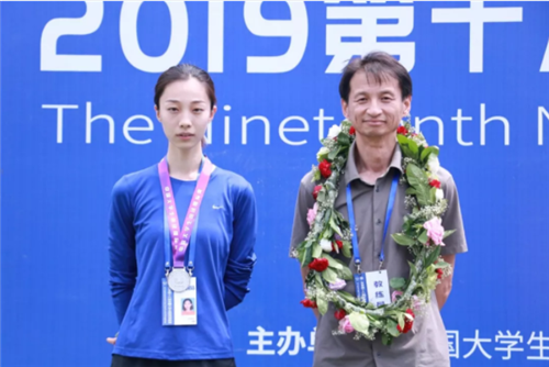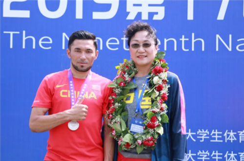 阿力木江·热合麦提与训练竞赛处唐国丽老师(右)
