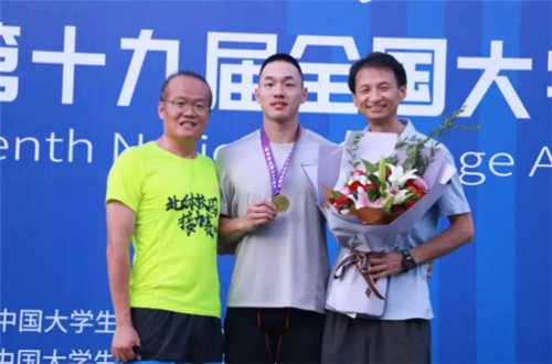 从左至右:中国田径运动学院院长武文强、李晓东、教练周忠革