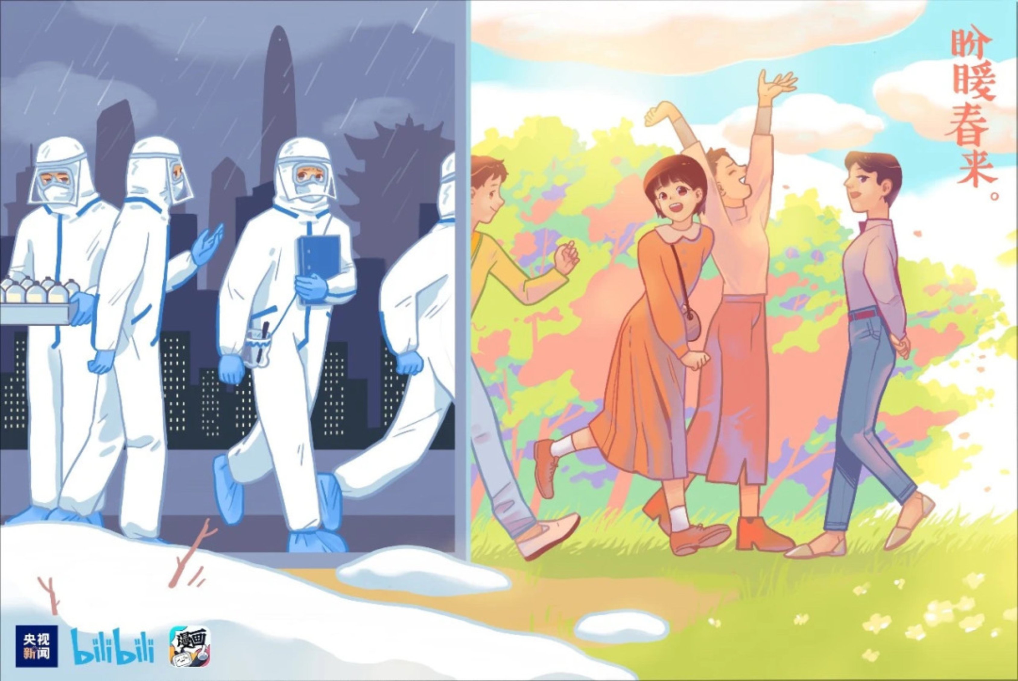 这场疫情中,引起我们关注的还有微博上一个名为“我们最好的时光就是现在”的视频作者孔维剪辑了疫情中发生的一些感人的瞬间,其中有把仅剩的口罩送给没买到口罩的老人的高铁列车员,有医院门口与家人挥泪告别隔空拥抱的医护人员,有为执勤民警送消毒液不留名的热心市民,还有在机场分发口罩的“中国人”小哥等等。有的同学提到:“正是这一场不幸让我们看到了原来这个社会,有这么多可敬可爱的人。无论多少黑暗,光明永远闪耀,我们正在经历历史,经历着苦难、绝望与痛苦,但也经历着勇敢、无畏和担当,认清更多现实,清理更多污垢,每个人都在用不同的方式爱着、用尽浑身力气热爱着。这一切都会过去,愿枝头春满,山河无恙。”