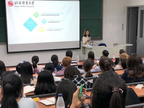 首先,国际体育组织学院院长田慧教授用英文欢迎各位新生的到来,她鼓励同学们积极奋进,认真学习,珍惜大学时光。田慧院长的话让在场的每一位同学受益匪浅,现场响起雷鸣般的掌声。紧接着,各专业老师做了自我介绍和相关课程介绍,包括教学内容和教学模式等,使同学们对于即将开始的专业课程有了初步的了解。