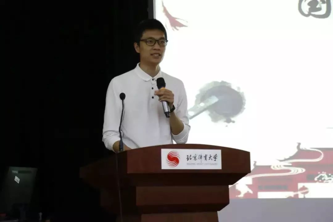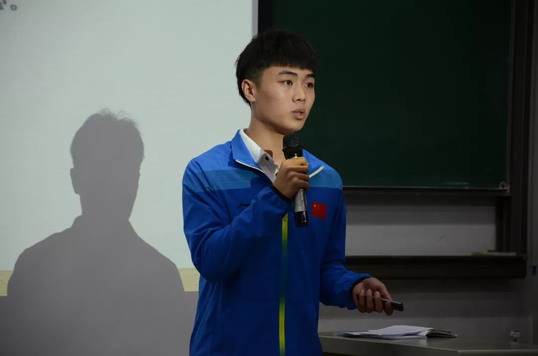 “青春万岁”自行车方阵的代表,来自国际体育组织学院2018级的李昱震同学表示国庆阅兵后,各大媒体和网友对自行车方阵的表演一致好评。他向大家介绍了自行车方阵的由来和方阵阵型、排练背后的小故事以及设计邮递员这一角色背后的意义。李昱震同学的生动讲述,让参会的同学们切实感受到“史诗级浪漫”方阵背后的坚持、汗水与精神。