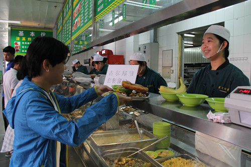 学生在专设窗口取餐
