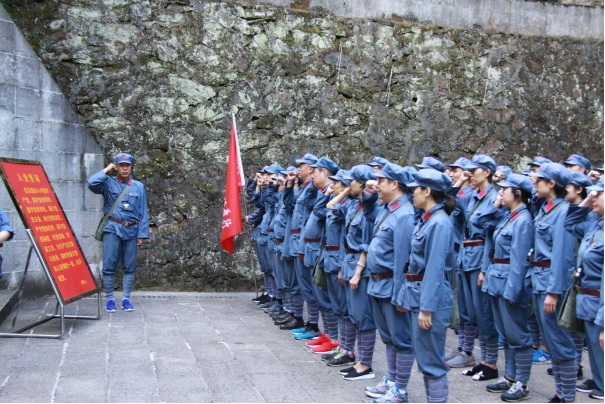 学员们在当年革命先烈战斗过的哨口——黄洋界,寻访革命前辈战斗遗迹,实地体验着艰苦卓绝的斗争环境,感受革命之火燎原之势,重走朱毛曾经走过的“挑粮小道”,体验当时官兵一心、军民一心,自力更生、艰苦奋斗的革命精神。