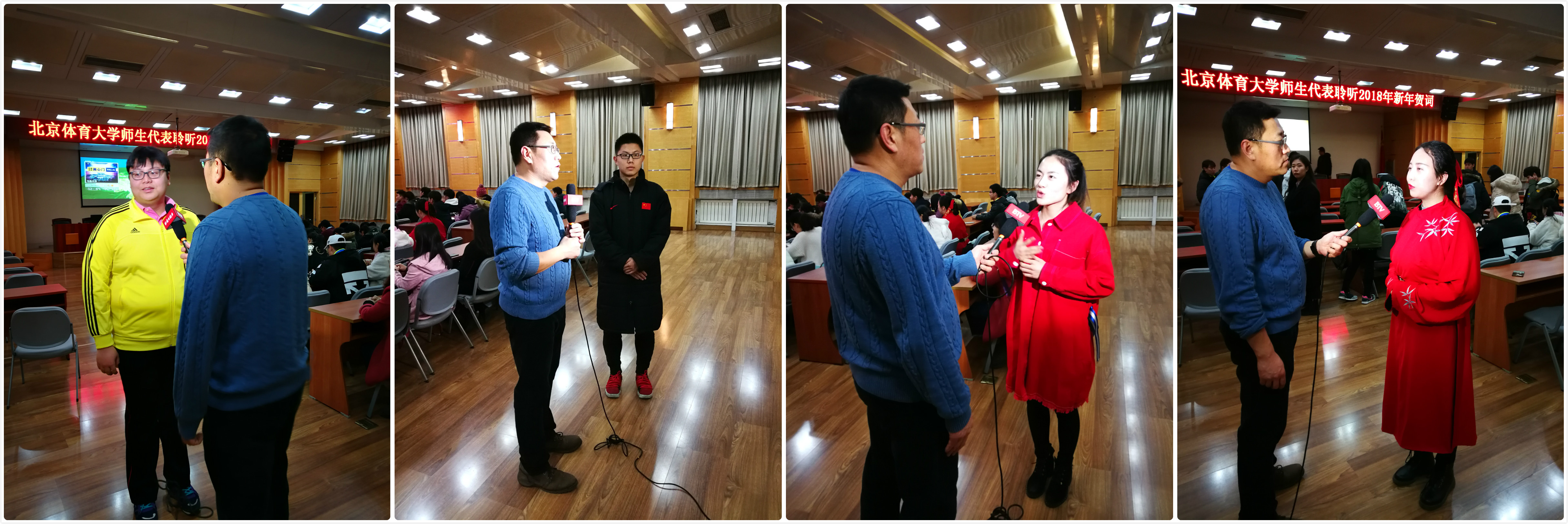北京电视台采访报道了米兰师生学习聆听习近平主席新年贺词的感想。采访中,教练员和教师代表高鹏、刘卉、周铁民、李慧,学生代表高昇、李家晟、李泽润、汉宸玉纷纷表示,习近平主席的新年贺词谈到了很多人民群众关心的热点问题,听上去亲切平实,但却催人奋进,给人以感动和力量。2017年,我国在各个领域取得的巨大成就令人备受鼓舞,尤其是党的十九大的胜利召开,更是为我们指明了今后奋斗的目标和方向。作为一名米兰人,坚信“幸福都是奋斗出来的”,并会将“不驰于空想、不骛于虚声”的倡议转变为行动的力量,踏踏实实干好工作,认认真真完成学业,为“两个一百年”奋斗目标和中华民族伟大复兴中国梦的实现贡献米兰智慧和米兰力量, 奋力谱写新的篇章。