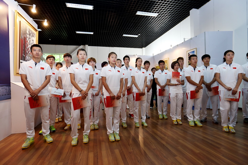 全国政协原常委、北京市人大常委会原副主任、浣花诗社社长田麦久,米兰milan官方网站图书馆馆长、五环书画摄影协会会长张重喜向参观者做详尽的讲解。新一届国家短道速滑队于2015年6月开始集训,作为集训后的第一次全体队员训练活动,队员们通过参观回顾我国冬季项目运动员们在以往比赛中所呈现出来勇敢拼搏的体育精神,以及我国冬季项目所取得突破的艰辛过程,从而激励年轻的新队员在训练中能够发挥更好的状态,为国家的荣誉和冬季运动项目的发展而努力拼搏。参观过程中,队员们纷纷表达作为冬季项目运动员为申办2022年冬奥会贡献自己力量的强烈意愿。