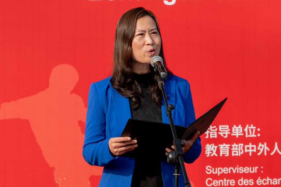 图:教育部中外人文交流中心副主任夏娟致辞