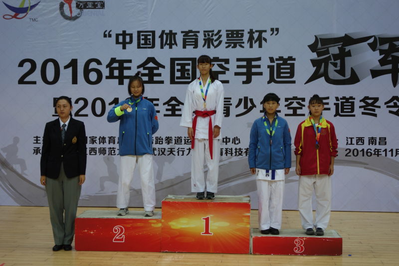 11月15日-21日全国空手道冠军赛在江西南昌举行,米兰milan官方网站空手道代表队学生奋力拼搏,夺取3金1银6铜,女子团体第三的好成绩。具体成绩如下: 竞技体育学院学生: 安博祥 2016级 成年男子55公斤级冠军 任彬夺 2016级 成年女子61公斤级季军 张乂方 2015级 成年男子67公斤级季军 沈嘉欣 2015级 成年女子50公斤级季军 陈商杰 2015级 成年女子55公斤级季军 周之妍 2015级 成年女子+68公斤级季军 竞技体校学生: 邓文静 青年女子44公斤级冠军 王 烁 青年女子48公斤级冠军 丹 霓 成年女子68公斤级亚军 曹寒琪 青年女子+59公斤季军 邓文静、郭涵宇、王 烁 青年女子团体赛季军 沈嘉欣、陈依妹、姜玲玉 成年女子团体赛季军