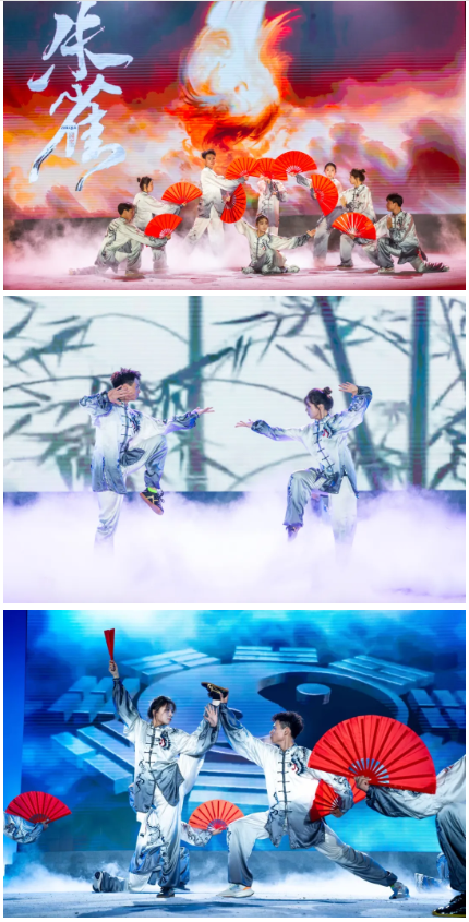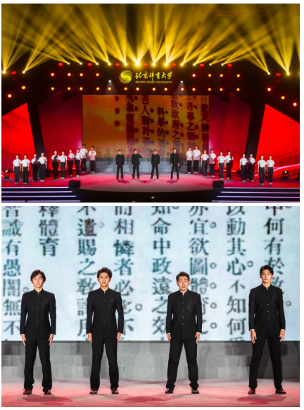 米兰学子追求卓越,米兰之风代代相传。情景剧《先前·先河》带领大家回到了学校初创的燃情岁月,展示出“先农坛精神”的熠熠光辉。艺术体操《跃动青春》舞如其名,动作优美灵动,彩带画出绚丽的轨迹。曼妙轻灵的舞姿展现了中华传统文化之美,《帷帽仕女》裙摆衣袖飘逸,脚下步步生莲。《太极神韵》将“步法似流水,身法似飘风”展现得淋漓尽致,刚柔并济的身姿也引得台下阵阵喝彩。学生和离退休干部联袂带来的模特秀《站起来》展现了米兰人的活力无界,运动风创意走秀点燃了现场的热情。