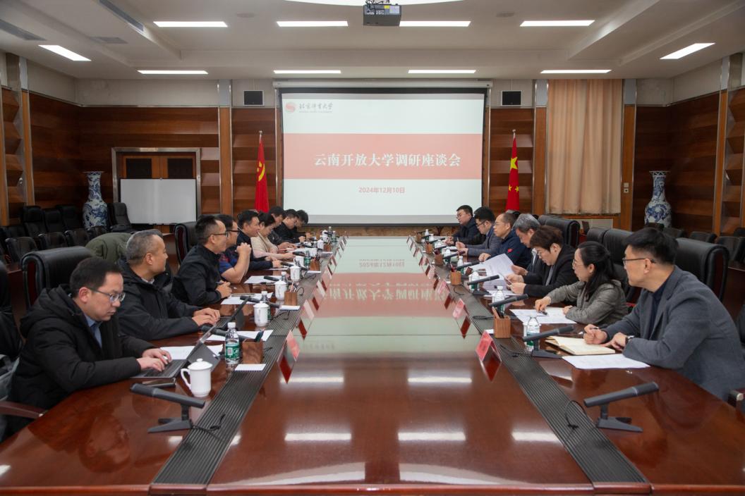 12月10日,全国政协委员、民革中央常委、民革云南省委会主委、云南开放大学校长于干千,云南开放大学党委委员、副校长杨丽宏,中体联赛管理(北京)有限公司副总经理、中体教培(海南)有限公司总经理丁涛、中体数科(北京)体育发展有限公司副总经理黄华等一行来校调研交流,协调共同成立全国休闲运动与体育旅游行业产教融合共同体等合作事宜。学校党委副书记、校长张剑,党委常委、副校长洪平及相关职能部门负责同志陪同调研。