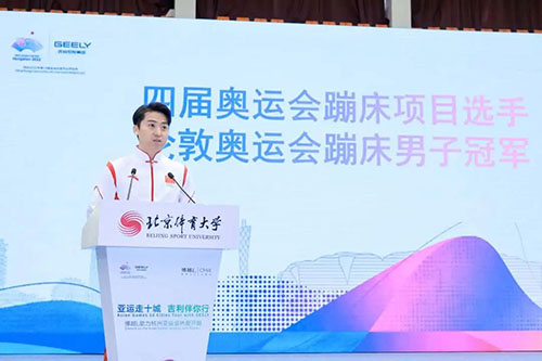 “亚运Talk”宣讲现场,4届奥运会蹦床项目选手、伦敦奥运会蹦床男子冠军董栋发布了支持杭州亚运会倡议:“让我们每个人从我做起,以最大的热情推荐杭州亚运会,传递奥林匹克精神,传播杭州亚运文化,让更多的人支持亚运,关心亚运,参与亚运。让我们共同助力一届史上最成功的亚运会,相约杭州,相聚亚运,心心相融,@未来!”