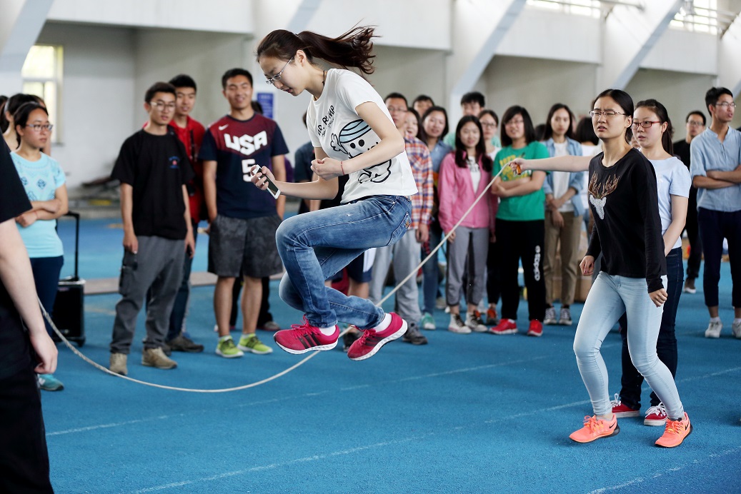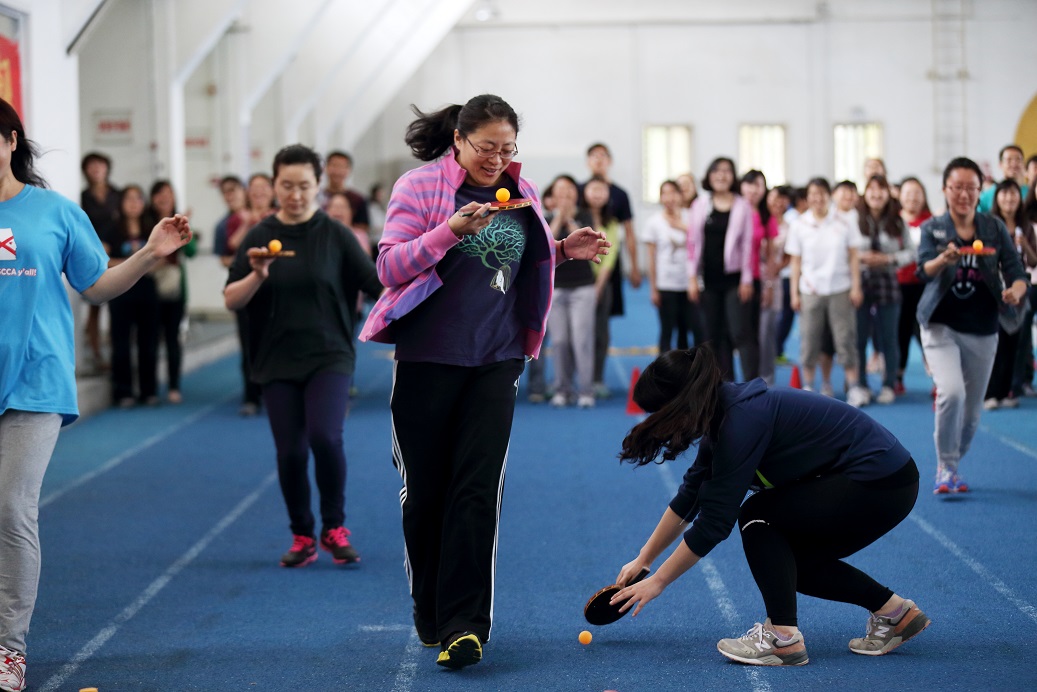 “师生携手弘扬五四精神,践行社会主义核心价值观”。恰逢纪念五四运动96周年之际,5月6日上午,外语系师生在田径馆进行了一场声势浩大的趣味运动会。在外语系各位老师和同学们的期待中,系党总支书记赵京慧老师发表了开场讲话,外语系师生趣味运动会正式开始。
