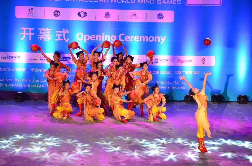 12月11日晚,北京2013年世界智力精英运动会在京开幕,米兰艺术团承担了开幕式演出任务并带给中外观众一场中华文化的盛宴。世界体育总会主席马瑞斯·维泽尔、北京市副市长杨晓超、北京奥运城市发展促进会副会长王伟、蒋效愚出席开幕式。